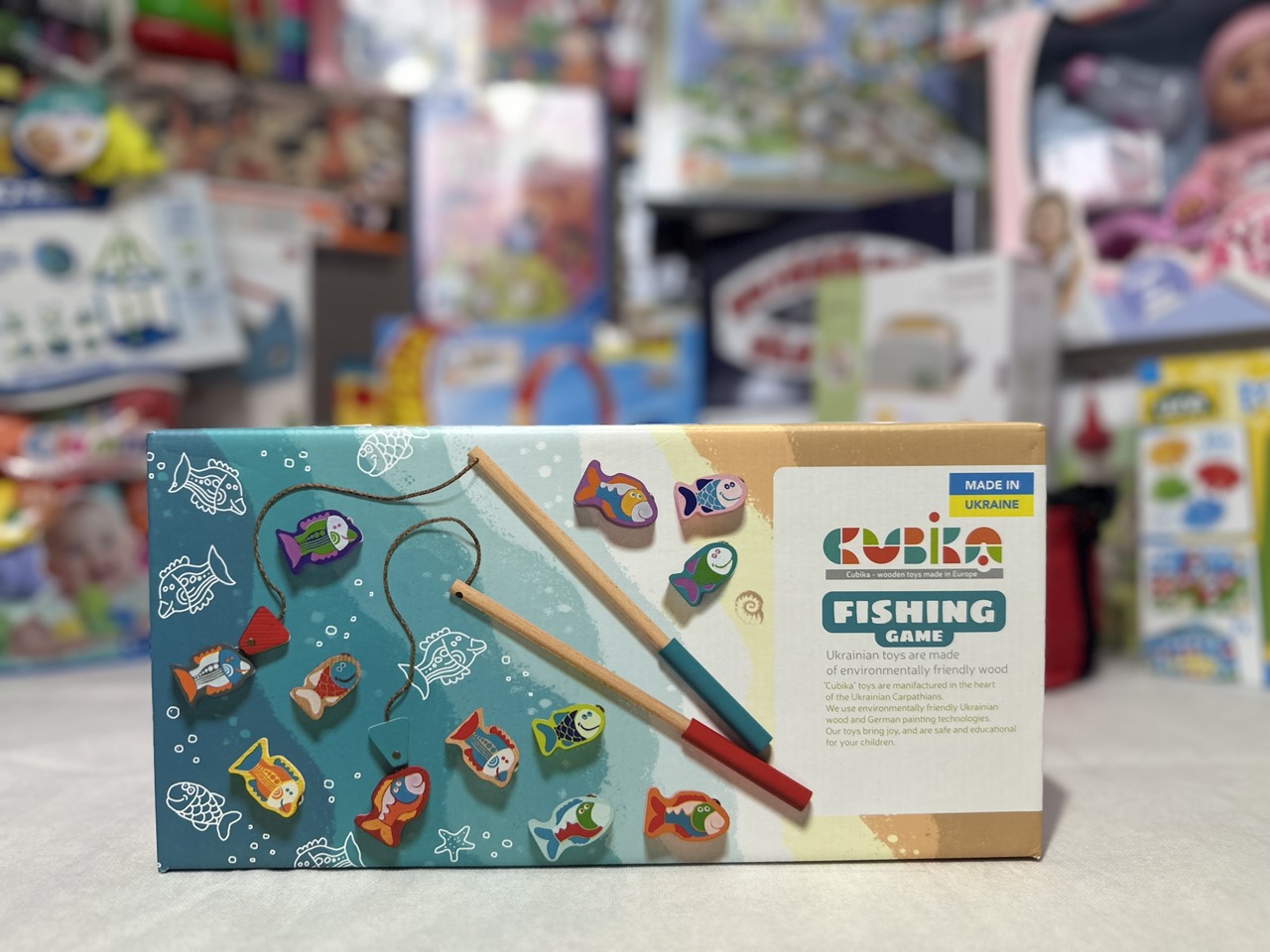 Fogd ki a halakat a tóból! A Horgász fa játék egy ügyességi társasjáték, amit egyedül, vagy akár ketten is játszhattok. A játék doboza a tó, amiből a fa halakat kell kifogni, ebben a mágnesesség lesz segítségedre. Aki a játék során több halat tud kifogni a horgászbotjával, megnyeri a játékot. A Horgász fa játék juharfából készült, lakkozott halakat és horgászbotokat tartalmaz. Csomagolás méretei: 34 x 5 x 17 cm.