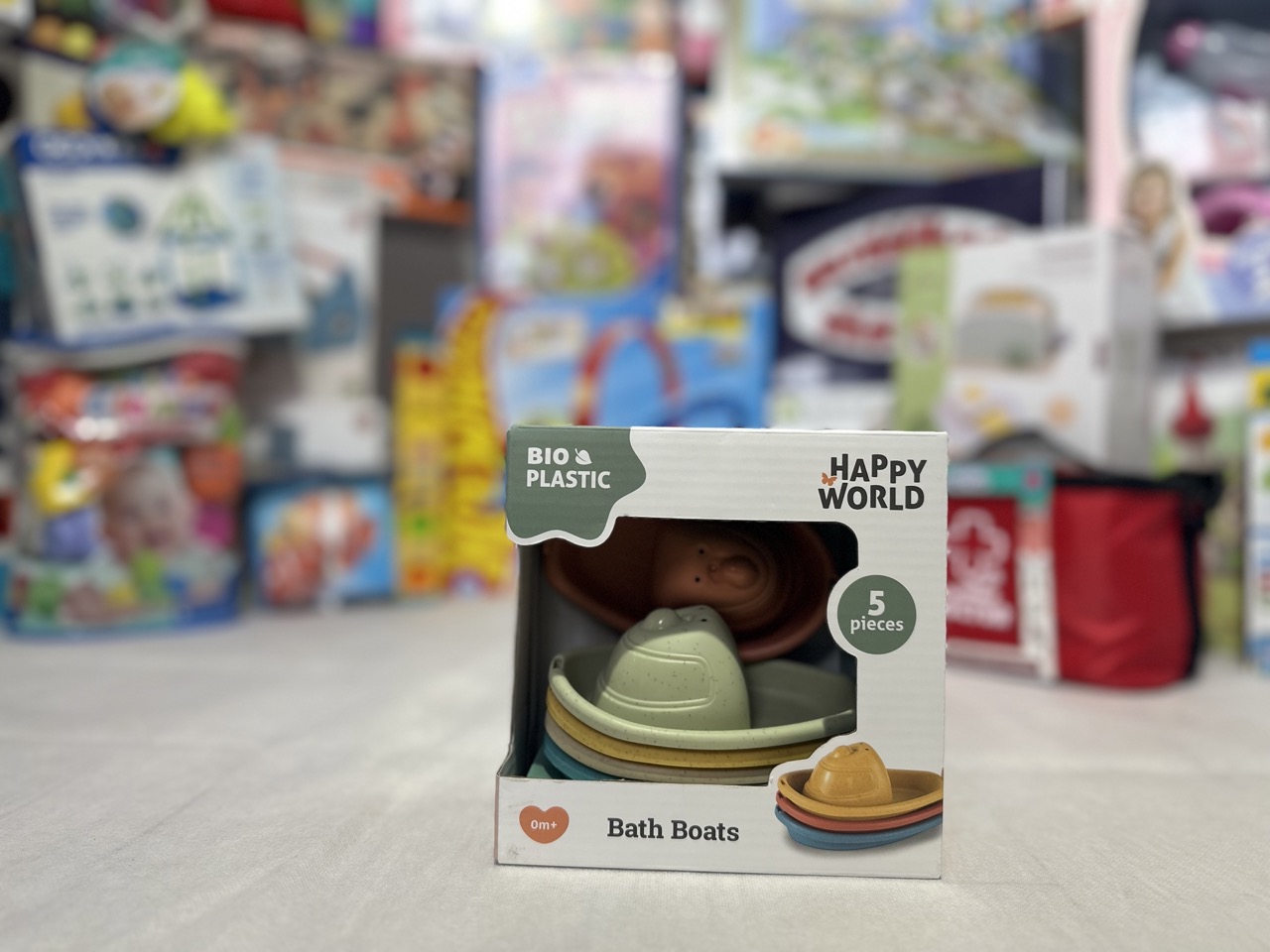 A Happy World biológiai alapú műanyagból készült kishajói egy öt darabos csomagban érkeznek, hogy a legkisebbek is élvezhessék a vízi kalandokat. A színes hajók tökéletesek a fürdőkádban vagy a medencében való játékhoz, és mivel biológiai alapú műanyagból készültek, a környezettudatos szülők is nyugodtan választhatják. A hajók méretei ideálisak a kisgyermekek számára, és a különböző formák és színek segítenek a szín és formafelismerés fejlesztésében.