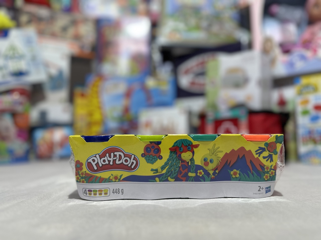 Formázz szobrokat gyurmából, vagy töltsd fel Play-Doh készleteid! A klasszikus színekből álló Play-Doh 4 tégelyes gyurma készlet 112 g töltősúlyú Play-Doh gyurmát rejt magában, fehér, citromsárga, világoskék és narancssárga színekben. A Play-Doh gyurmák egészségre ártalmas anyagot nem tartalmaznak, némi gyúrással megszűntethető a szárazsága, ráadásul minden Play-Doh készlettel együtt tudod használni. Formázd, lapítsd, készíts belőle hosszú kígyókat, vagy amit a fantáziád enged! Összsúly: 448 g.
