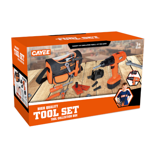 Ebben a barkácskészletben ott van minden, amire csak szükség lehet, ha valamit meg kell javítani vagy össze kell szerelni: 1 csavarhúzó, 1 kalapács, 2 csavarkulcs, 1 fogó, és a legfontosabb, 1 elemes játék fúrógép. Ehhez jönnek még kiegészítők, különböző fúróhegyek, csavarok, stb és hogy a rendszerezéssel és a szállítással se legyen gond, egy vagány táska, amibe minden elfér. Minden olyan, mint az apáé vagy a szerelő bácsié, csak épp biztonságos és csak a gyerekeké.